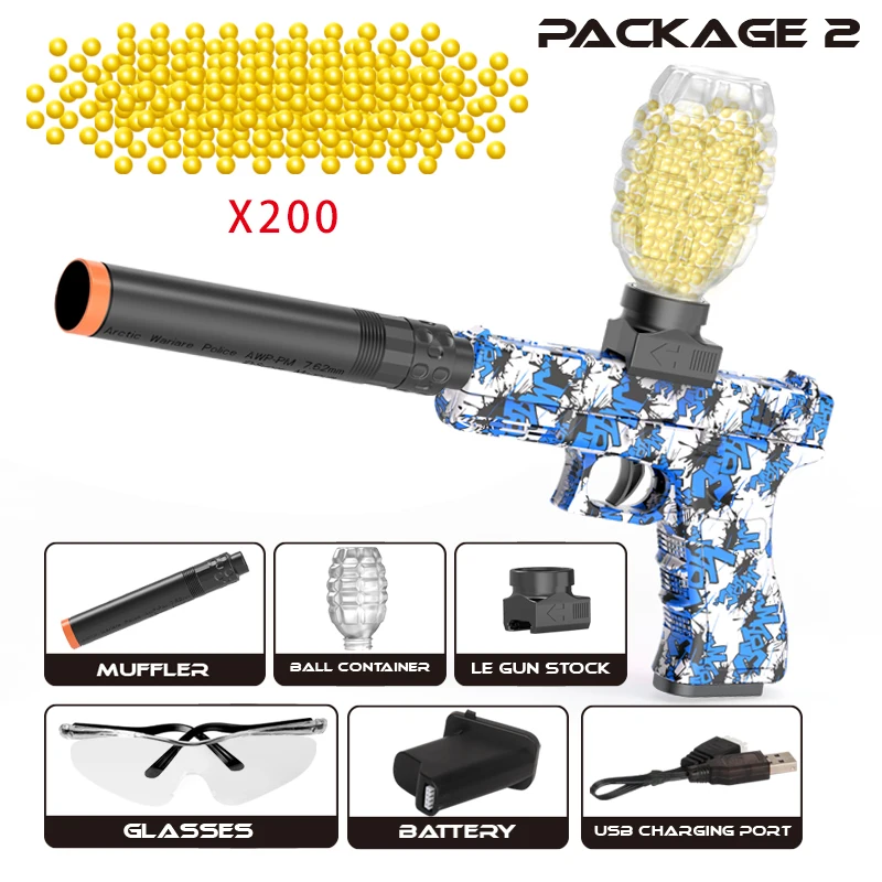 1. Electric continuous shooting Simply put the soft bullets into the bottle, turn on the switch, and you can fire continuously until the soft bullets are emptied. This is a suitable outdoor shooting game toy prop